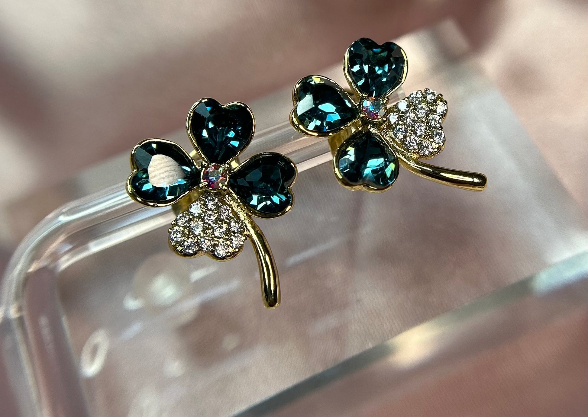 Aqua blue stone flower 14k gold plated stud earrings.