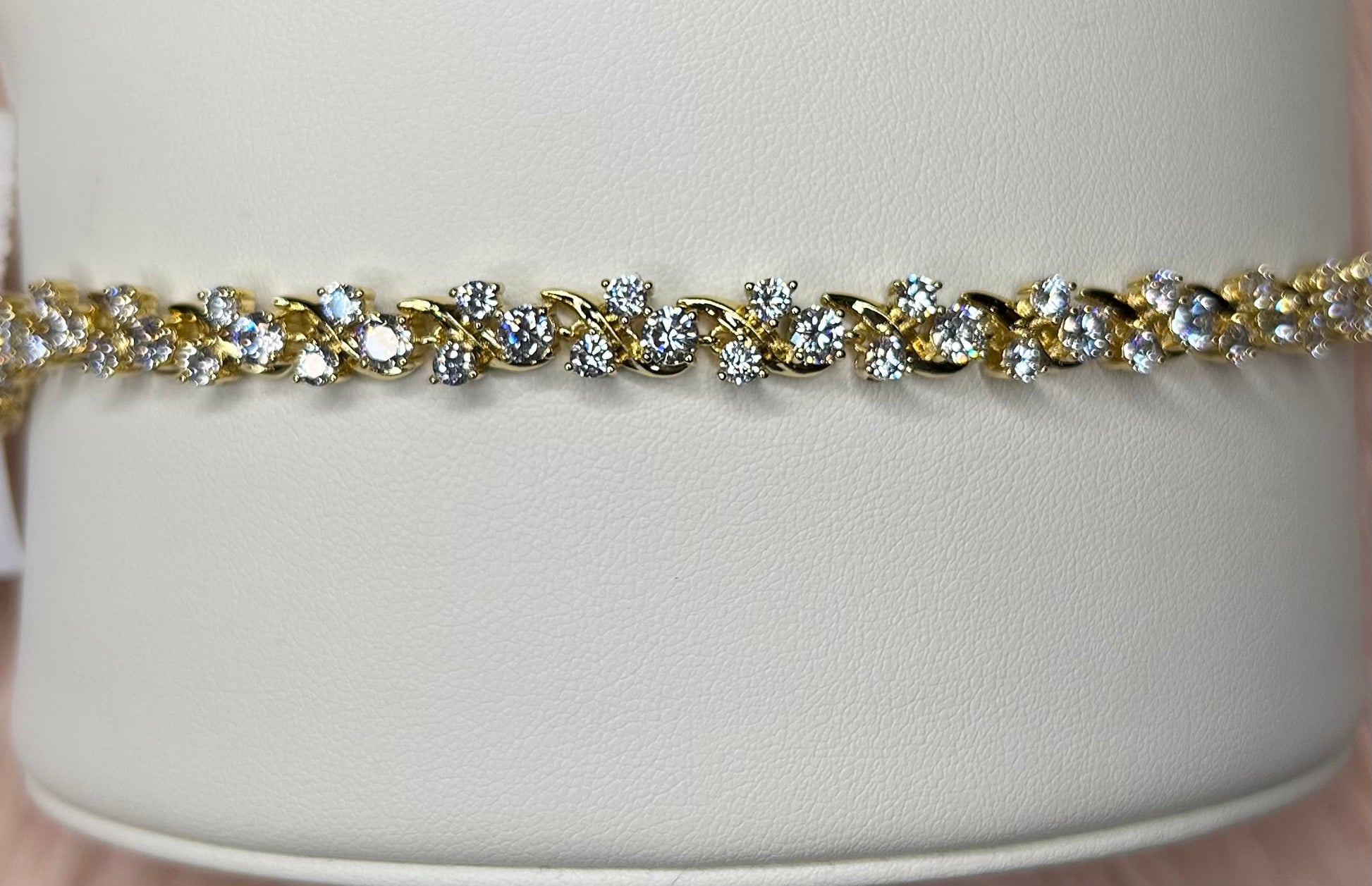14k gold plated bracelet 8 inches included extension. You can make it smaller.