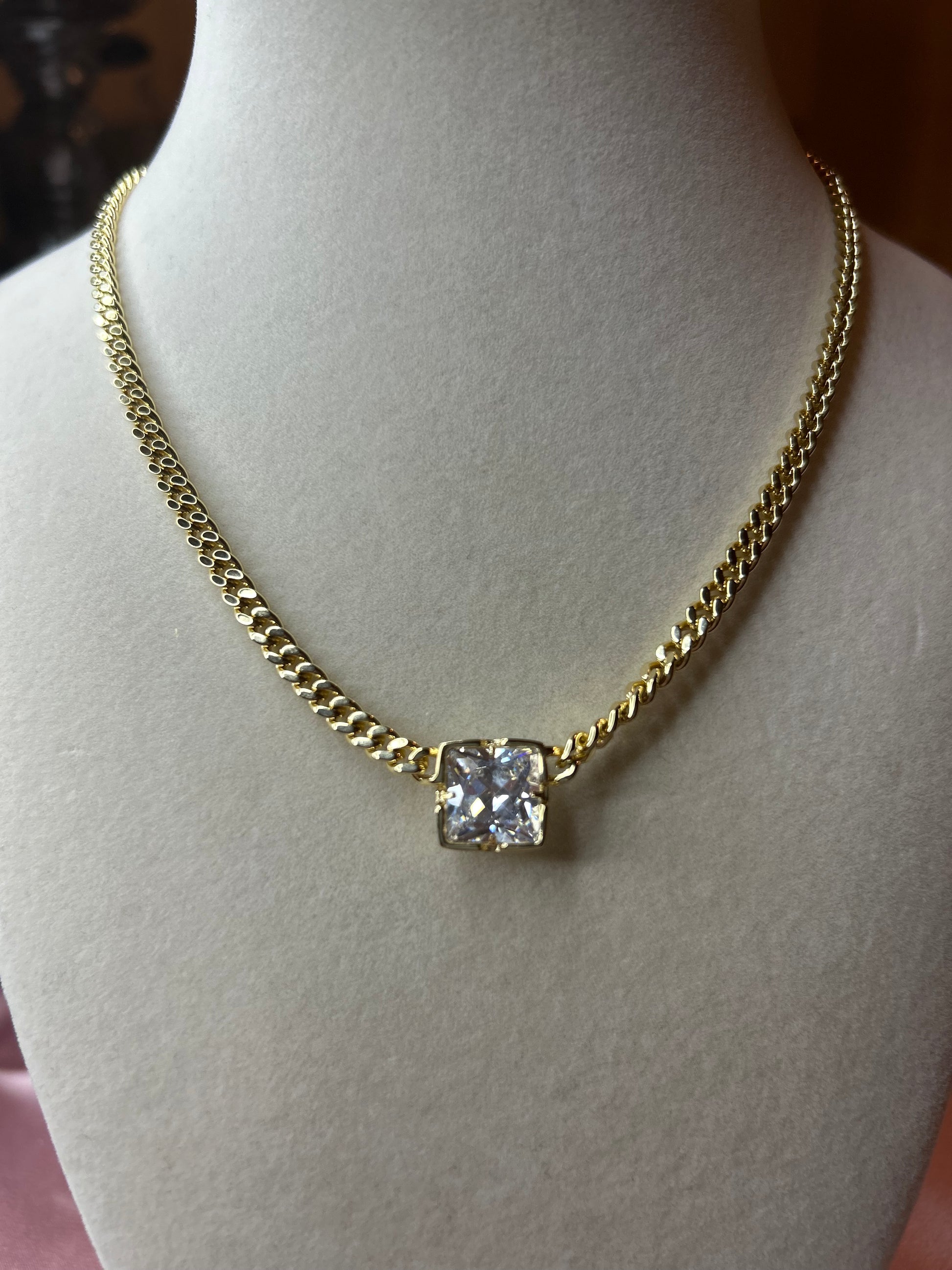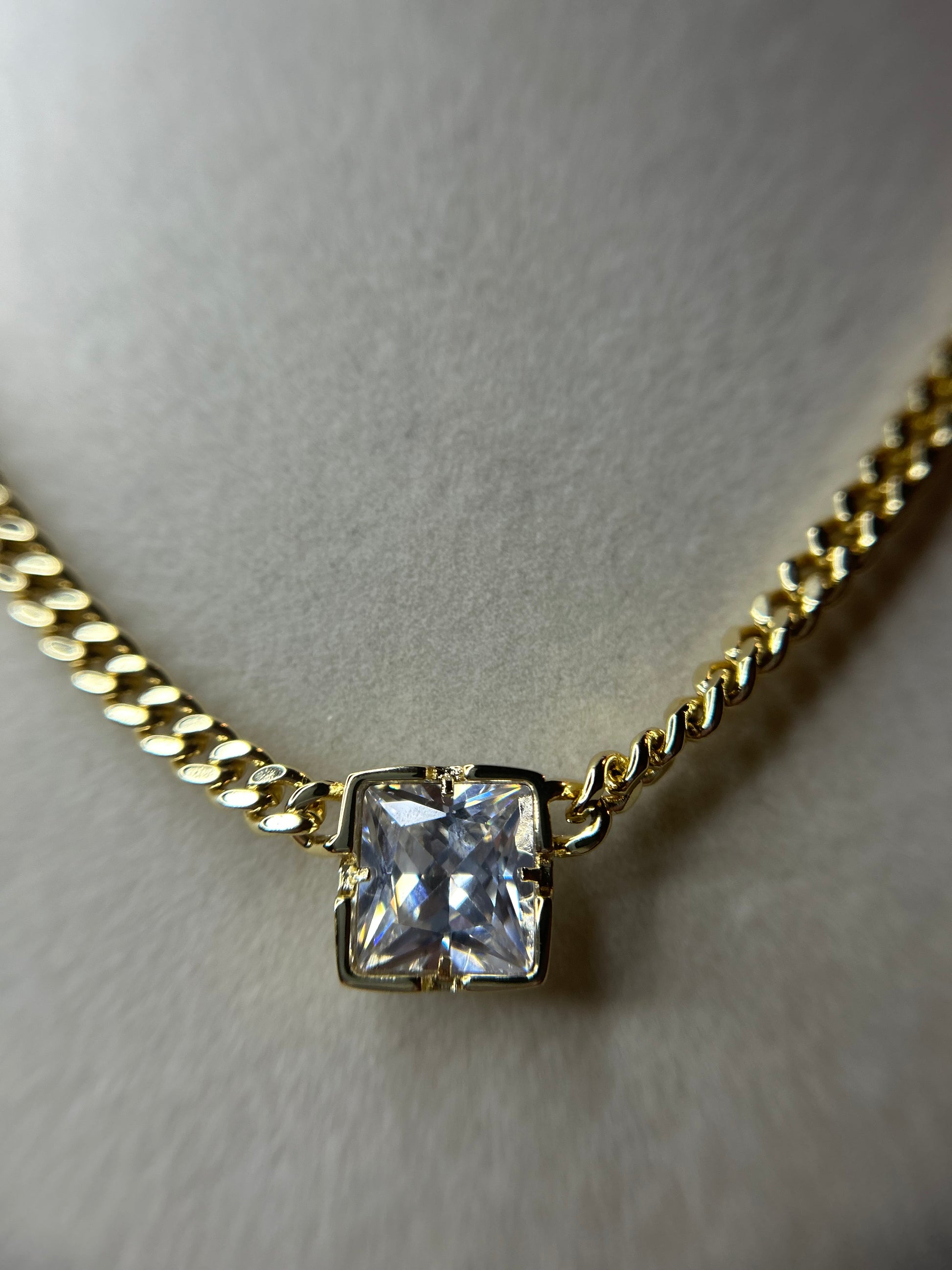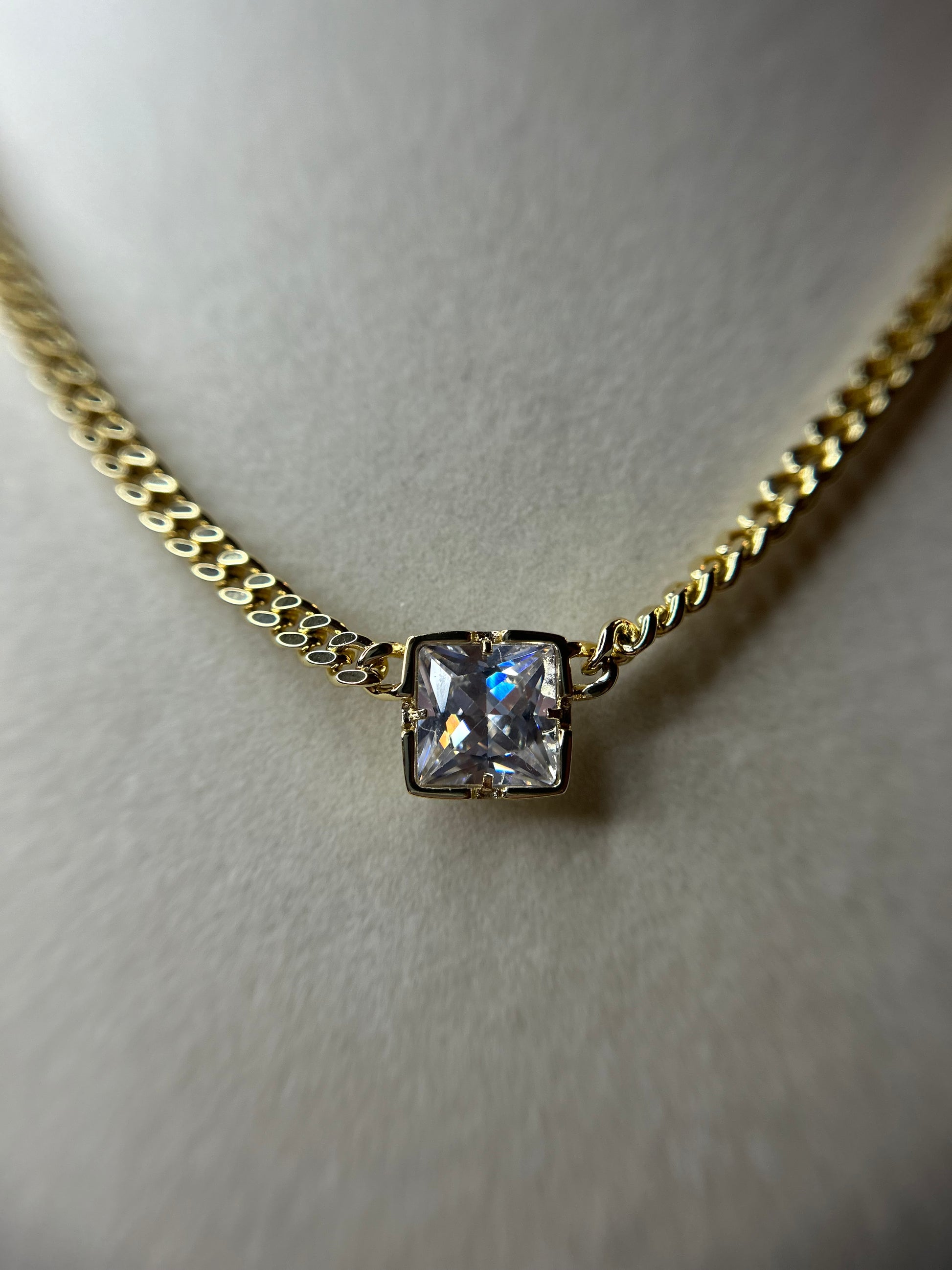 14k gold plated necklace with clear stone.