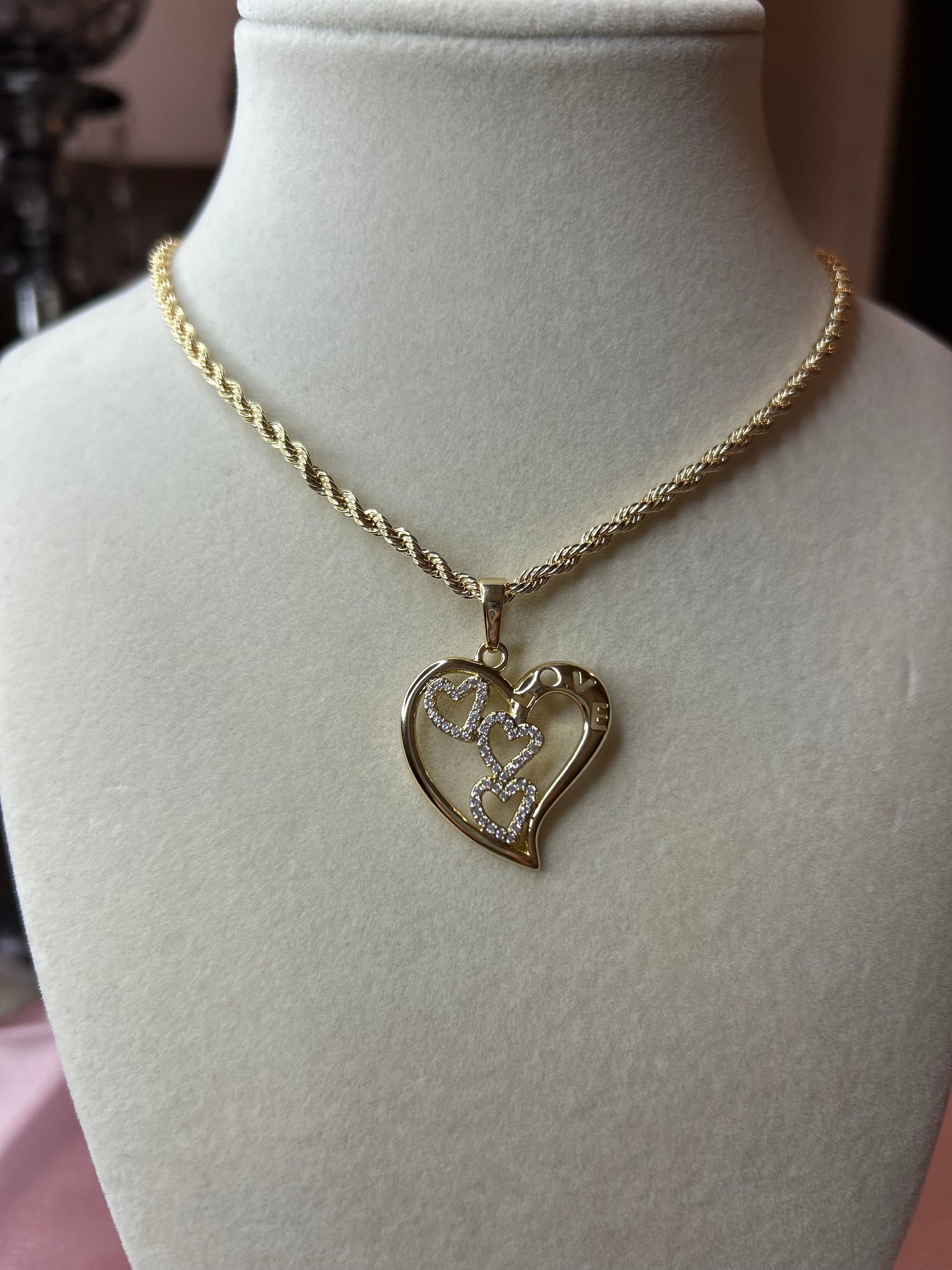 14k gold plated rope necklace with heart pendant.