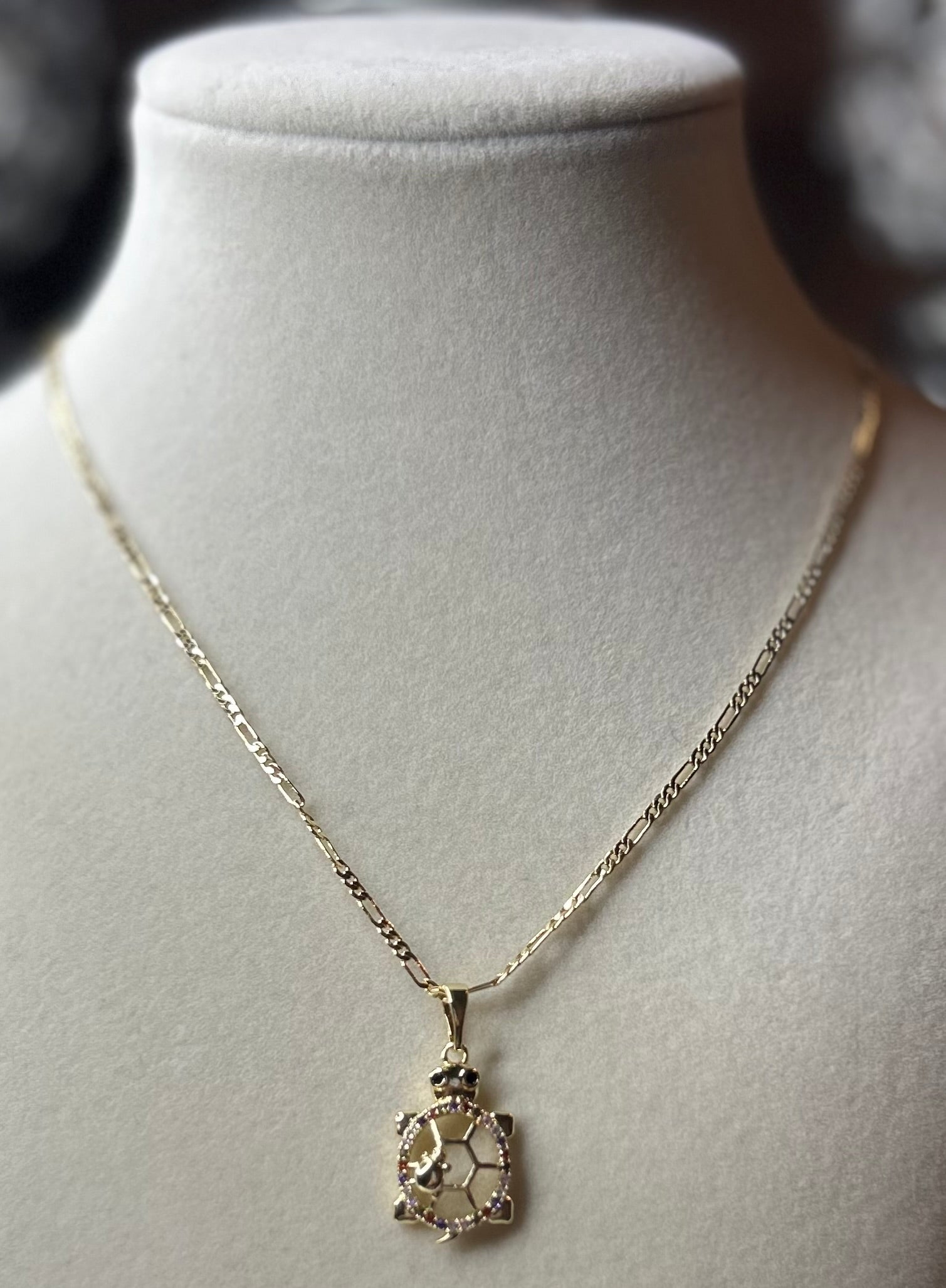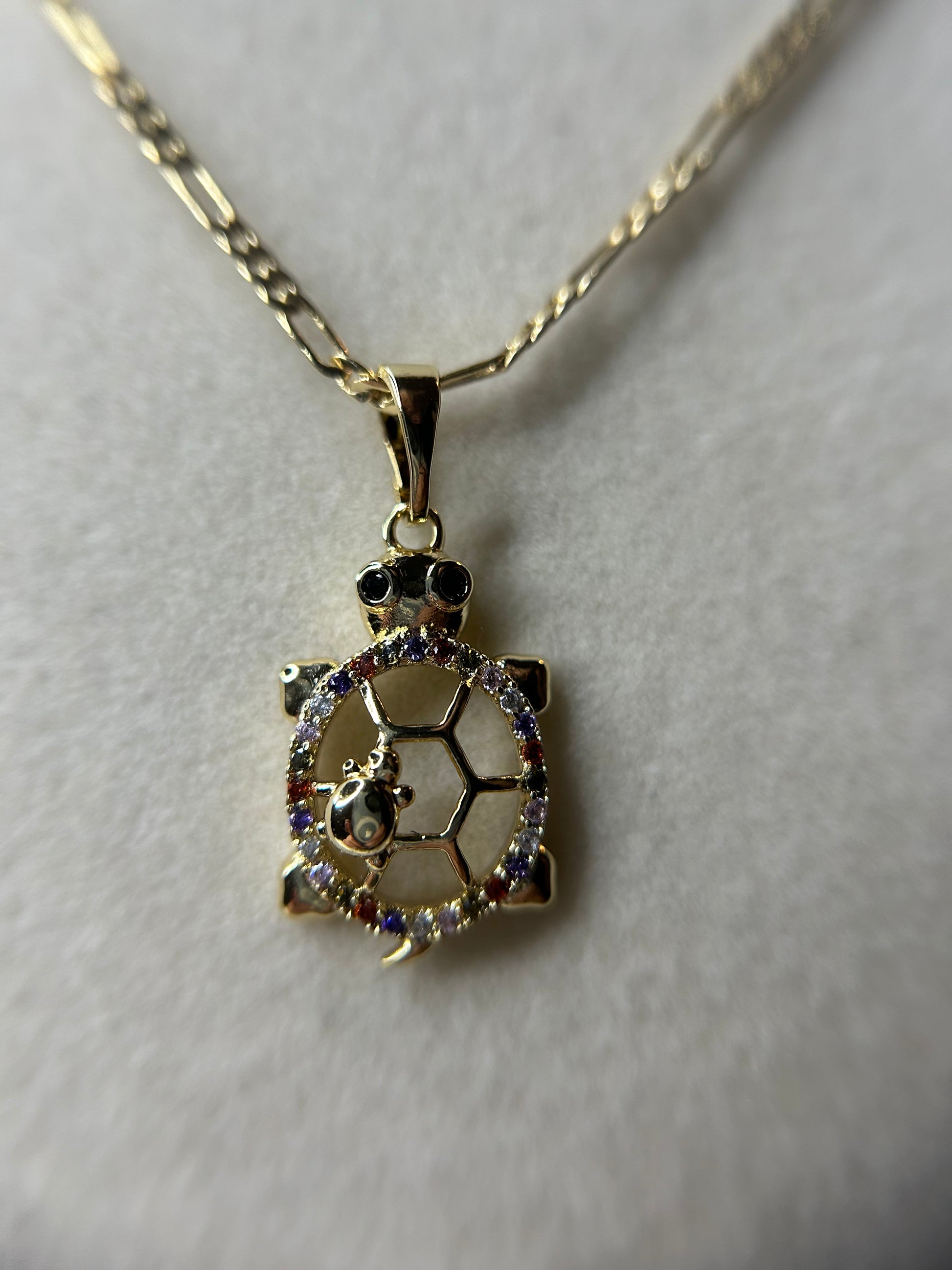 dije pequllo multicolor tortuga 14k Oro laminado con cadena.