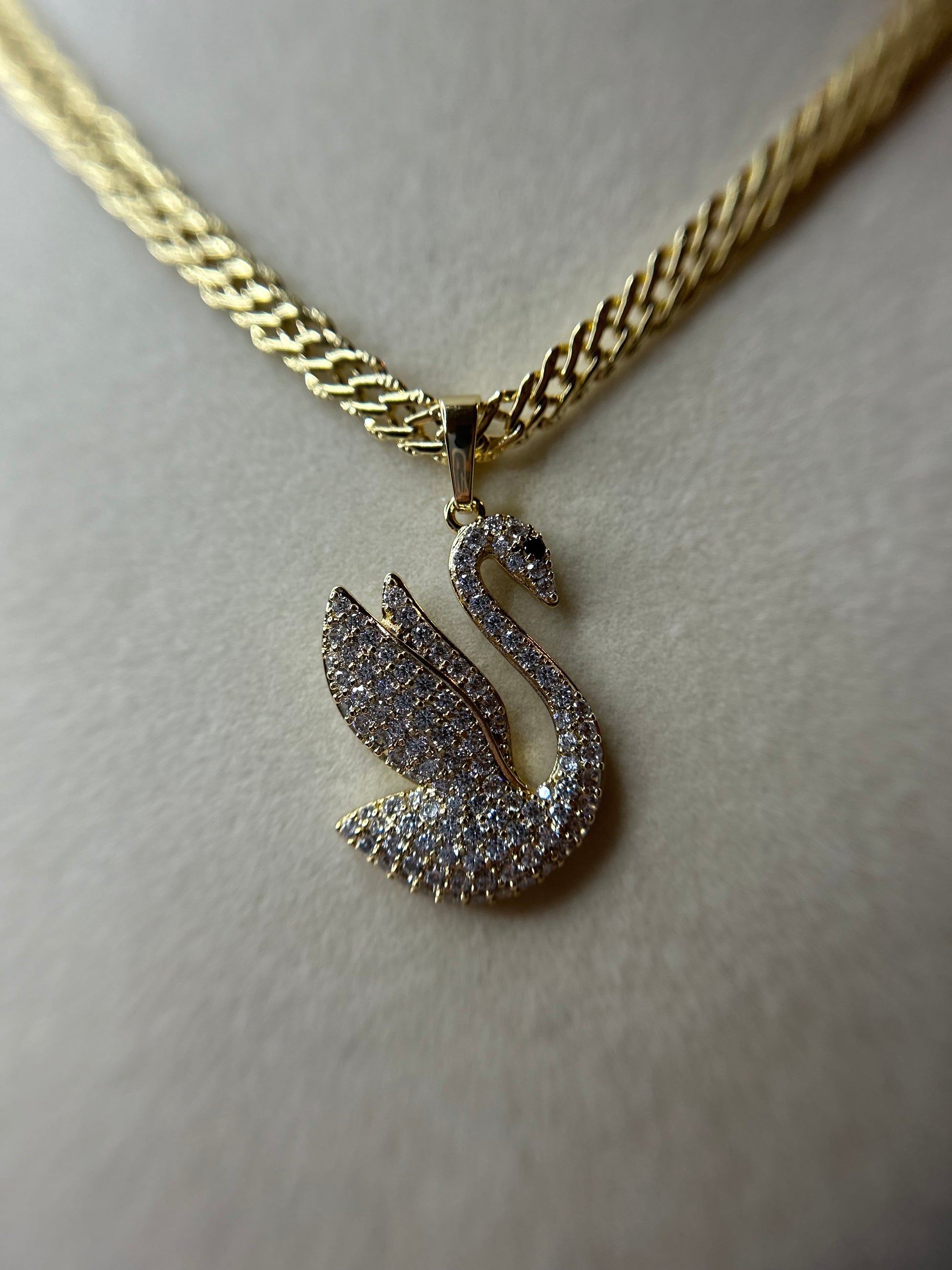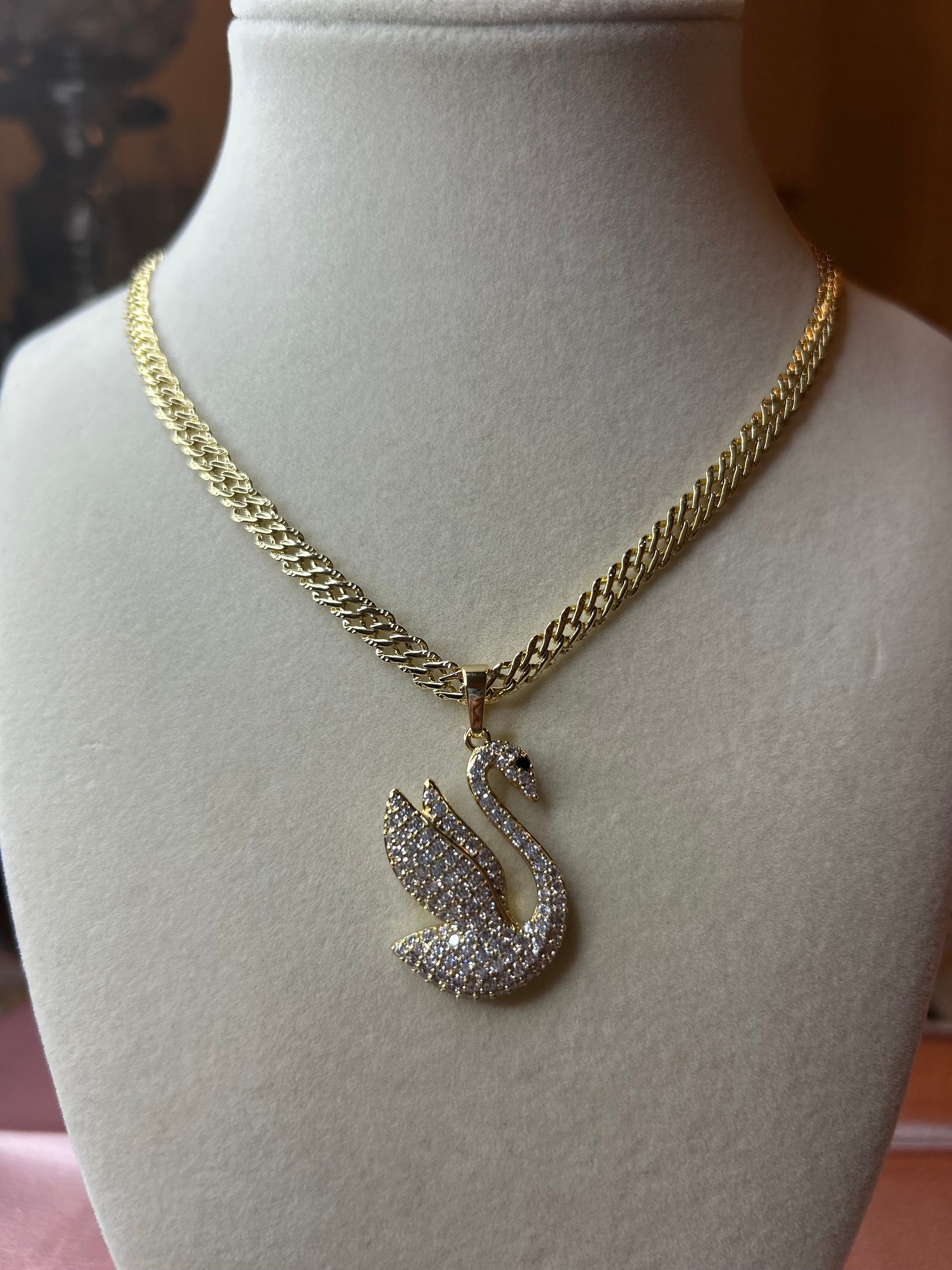 14k gold plated Chinese necklace with swan pendant.