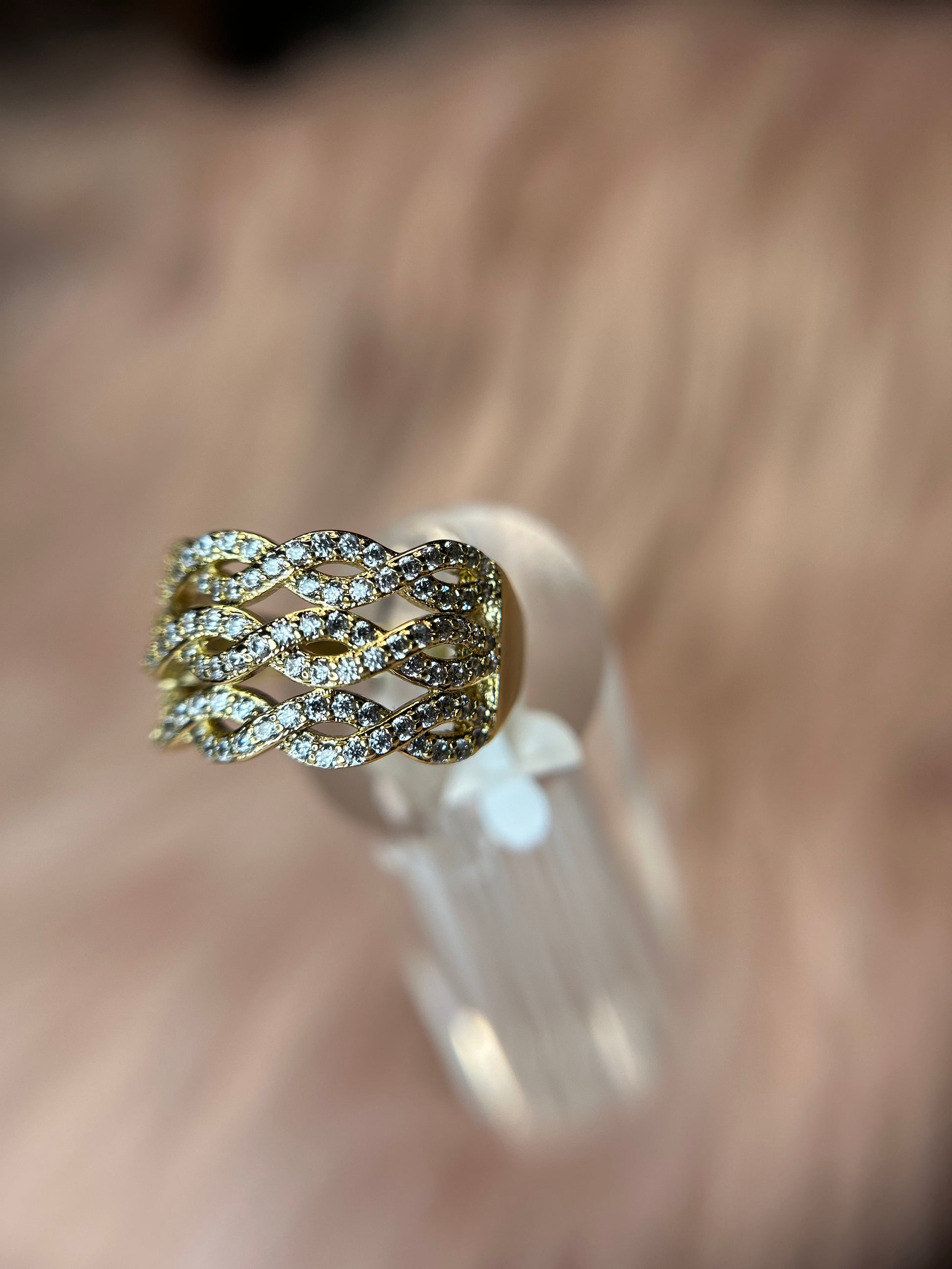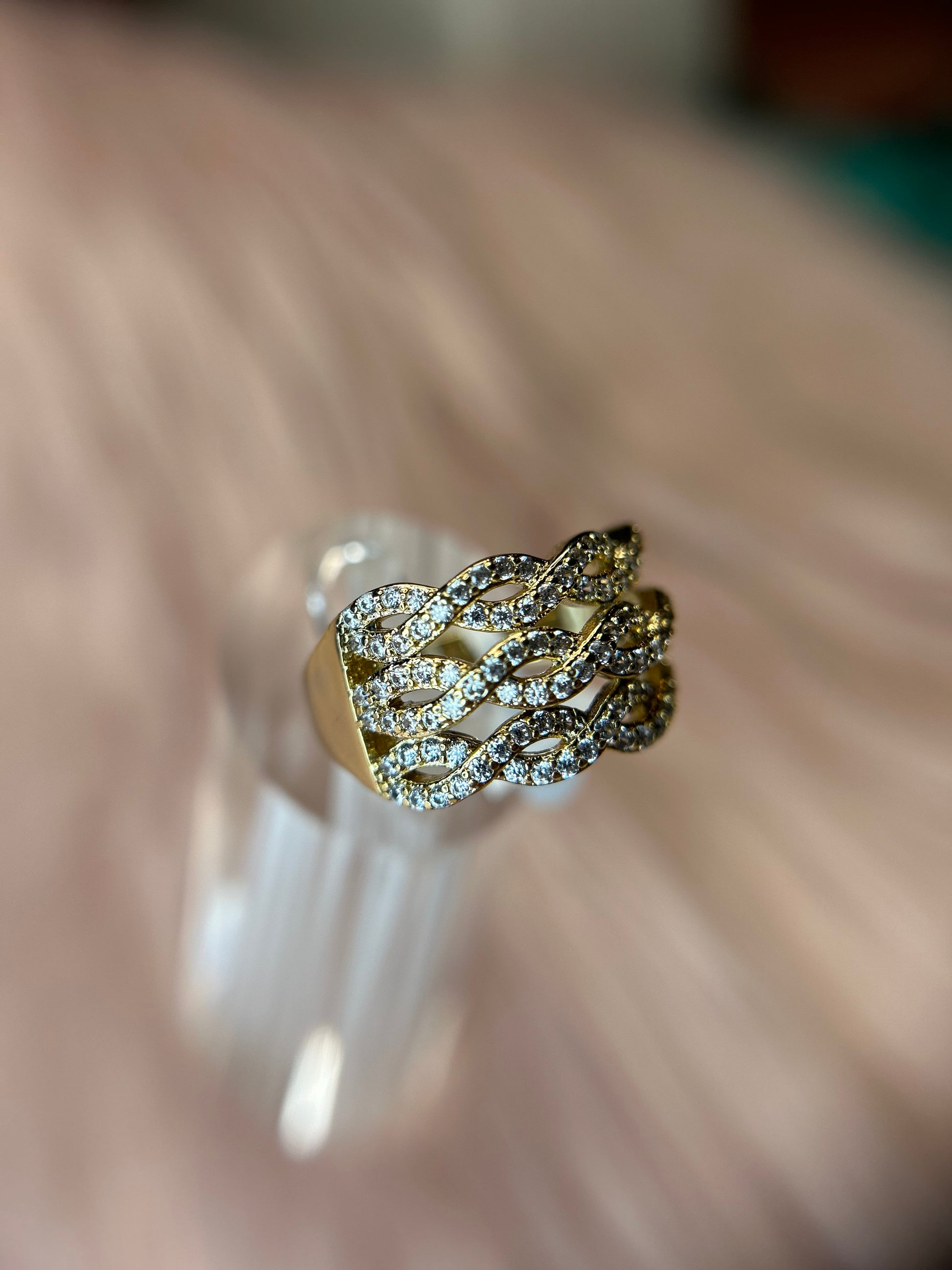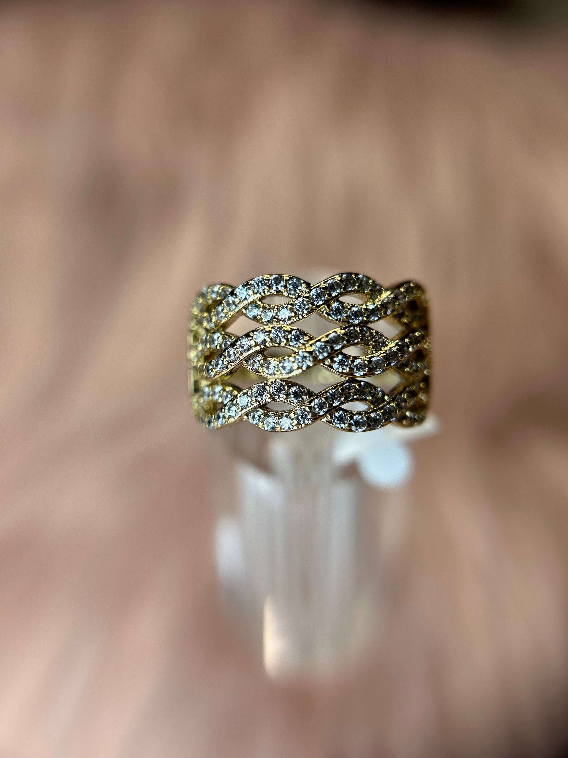 14k gold plated with white stones all over.
