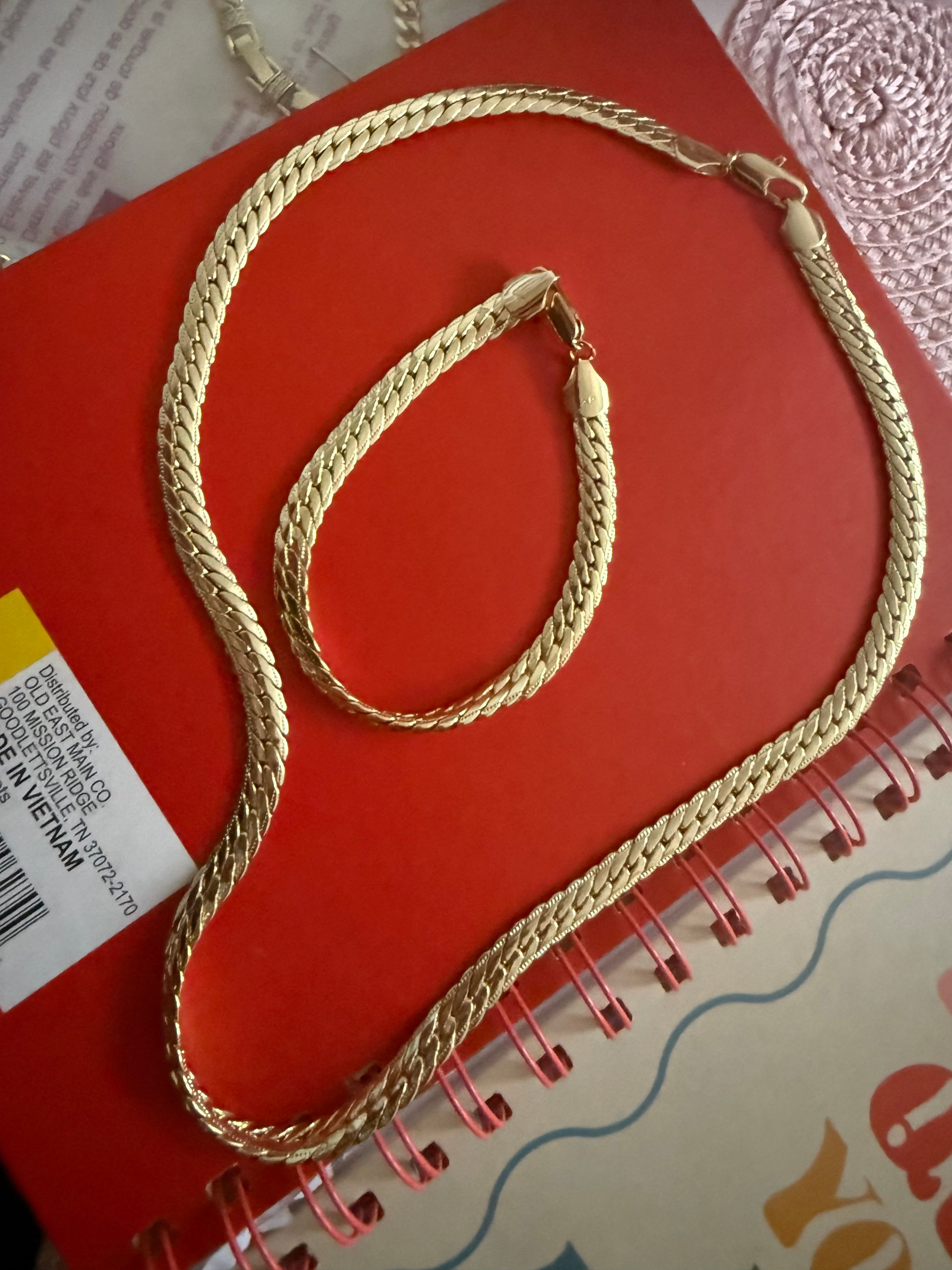 14k gold plated Thick necklace with matching bracelet.